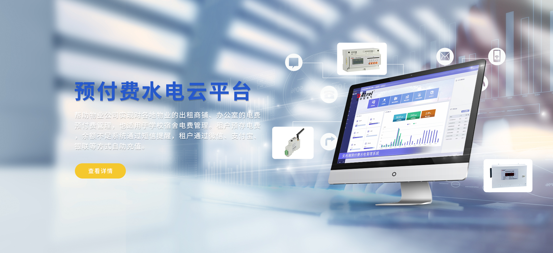 安科瑞提供的解決方案包括Acrel-EIoT能源物聯網云平臺、變電所運維云平臺、安全用電管理云平臺環保用電監管云平臺、智慧消防云平臺、能源管理云平臺、工業企業能源管控平臺、遠程預付費云平臺、餐飲油煙監管云平臺、電動汽車/電瓶車充電樁收費管理云平臺、電力監控/無線測溫系統、電能質量治理系統、電氣火災監控系統、消防設備電源監控系統防火門監控系統、應急照明和疏散指示系統、智能照明控制系統、醫用隔離電源絕緣監測系統等,幫助用戶實現能源智能化、可視化、精細化管理,提高用能效率和用能安全,為企業節能降耗和實現能源數字化建設提供數據服務。